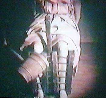 Классический «испанский сапог» представлял собой две доски, между которыми помещалась нога допрашиваемого. Эти доски были внутренней частью станка, который давил на них по мере погружения в него деревянных кольев, которые вбивал в специальные гнезда палач. Таким образом достигалось постепенное сжатие коленного, голеностопного суставов, мышц и голени, вплоть до их расплющивания. Нечего и говорить о том, какие муки при этом испытывал допрашиваемый, какими криками оглашалось пыточное подземелье, а даже, если человек находил в себе беспримерное мужество молча переносить мучения, то какое выражение его глаз могли видеть палачи и следователь.