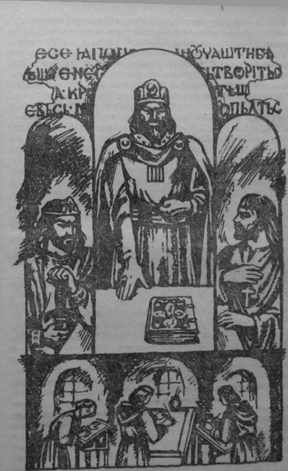 Борис протянул руку к маленькому перламутровому столику и ваял позолоченную книгу, которую Константин когда-то оставил ему в Брегале. Князь распорядился выковать для нее золотой оклад с двумя крупными драгоценными камнями, которые напоминали бы о двух братьях. Верно, они посещали его поодиночке и в разное время, но оба открыли перед ним истинно верный путь. Без их письменности он чувствовал бы себя как пастух» загнавший волка в свою овчарню и хвастающийся, что тот-де боится его.
