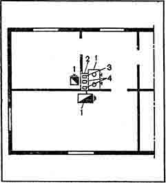 Рис. 20. Установка одной печи для отапливания четырех комнат