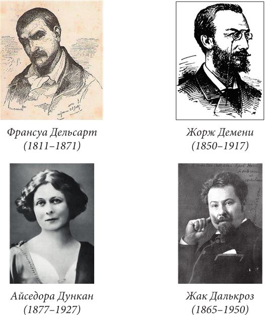 Современные разновидности двигательной активности, такие как ритмическая, художественная гимнастика и оздоровительные занятия, как отмечают специалисты, берут начало от четырех «Д». Под этим подразумеваются начальные буквы фамилий четырех основоположников музыкального ритмопластического направления в гимнастике: Жорж Демени, Франсуа Дельсарт, Айседора Дункан и Жак Далькроз (рис. 1).