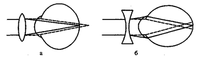 Рис. 2. Коррекция аметропии: а – гиперметропии; б – миопии.