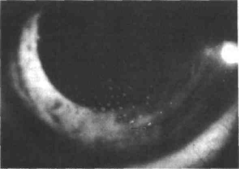Рис. 8. Преципитаты на эндотелии роговицы (линия Эрлиха-Тюрка).