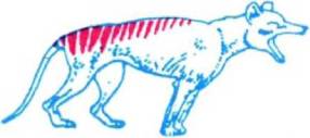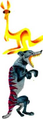 Рассказывают, будто сумчатый волк, спасаясь от погони и потеряв надежду убежать обычным путем, поднимается вдруг на задние ноги и скачет, как кенгуру. Не очень-то это похоже на правду, но Эллис Трофтон говорит, задние ноги сумчатого волка устроены так, что он, пожалуй, и в самом деле может скакать на манер кенгуру, хотя, по-видимому, и недолго.