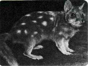 Сумчатых куниц шесть видов. Местами их еще немало, даже вокруг крупных городов на востоке Австралии: в предместьях и садах. Одна недавно забралась на автомобиль, и там ее поймали.