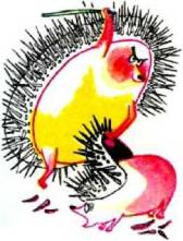 Я люблю ежей, и у меня они часто жили. Однажды видел я, как еж, прижав сырую морковь к стене, пытался наколоть ее на иглы своего насупленного капюшона на лбу. Провозился он недолго, морковь наколол и бродил с ней из угла в угол явно с какой-то непонятной целью. Чего-то в комнате не хватало, чтобы цель эту привести в исполнение. Съел ли он морковь? Нет, даже и не погрыз.