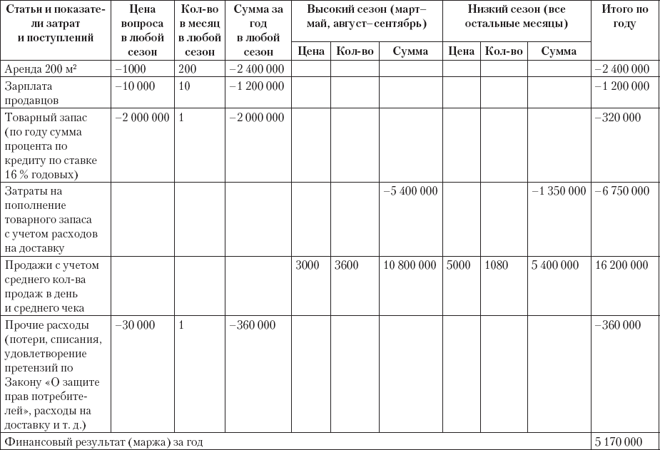 Таблица 5.1. Прибыльность самостоятельного бизнеса