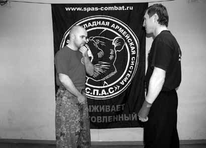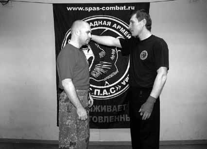 • Фактор позы. Как стоит ваш собеседник. Полностью выпрямленные и сведенные вместе ноги затрудняют ему рывок или удар в вашу сторону. Все ли конечности вы видите, или одна рука выпадает из вашего поля зрения? Как распределен центр тяжести: если он на задней ноге, то удар передней ногой вы, скорее всего, пропустите, поскольку возможен рывок к вам. Подогнутые и разведенные ноги, слегка подобранное тело и опущенный подбородок, сжатые кулаки или, наоборот, раскрытые для захвата кисти ярче красного цвета и громче воя сирены дадут подготовленному человеку сигнал «Боевая тревога!».