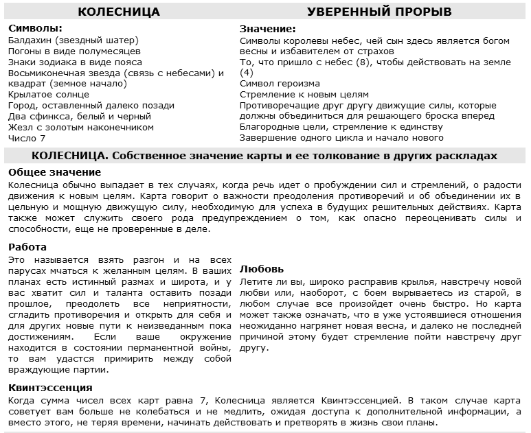 Книга Таро Райдера–Уэйта. Все карты в раскладах «Компас», «Слепое пятно» ; Энциклопедия Арканов Таро Кроули. Полная интерпретация карт