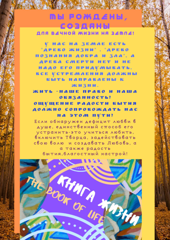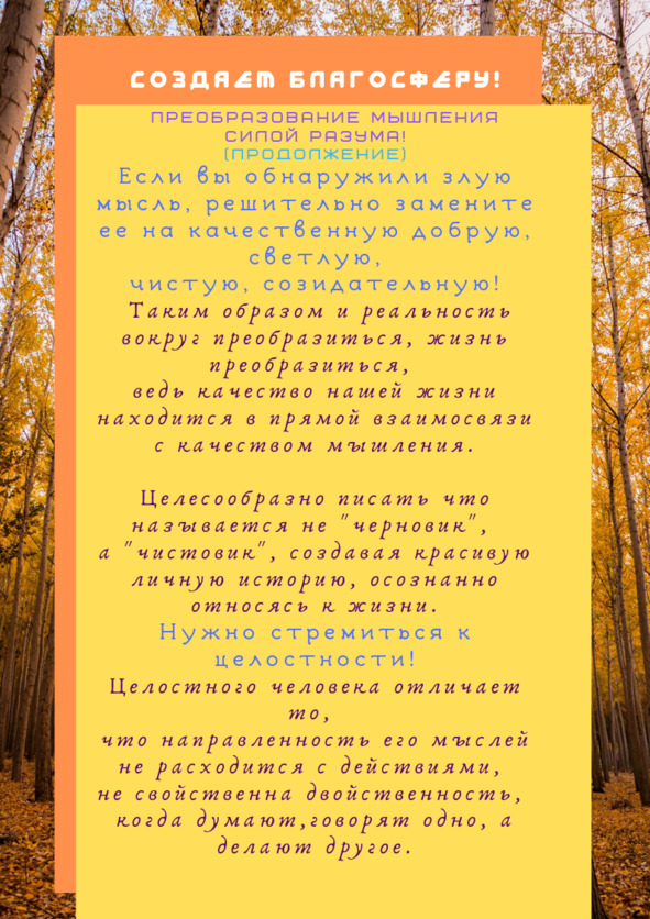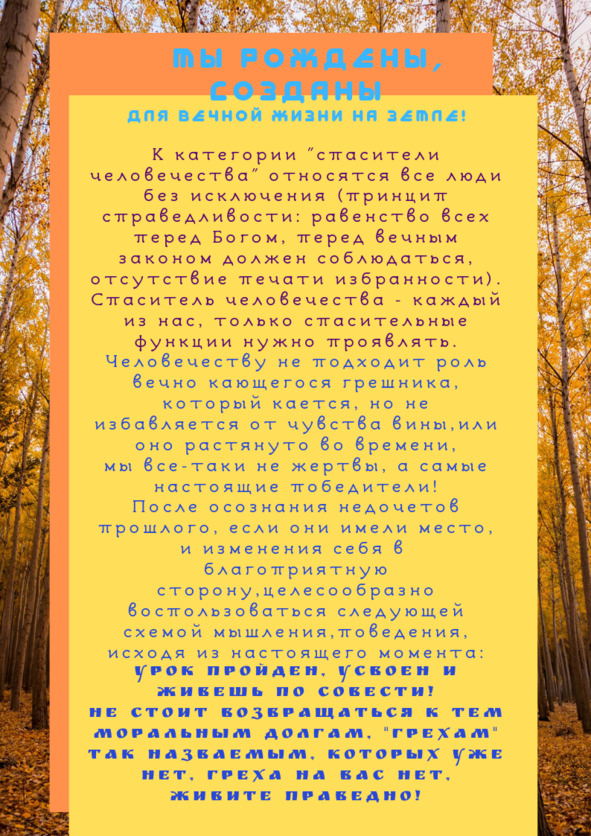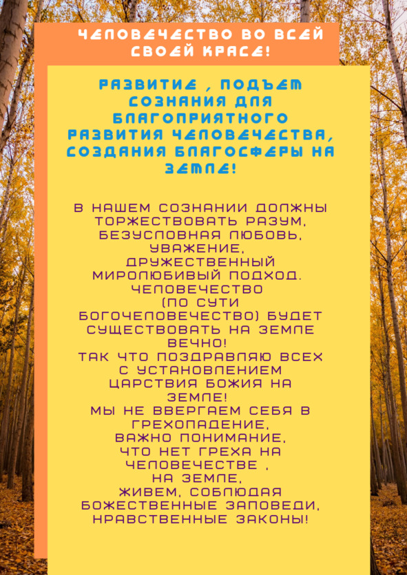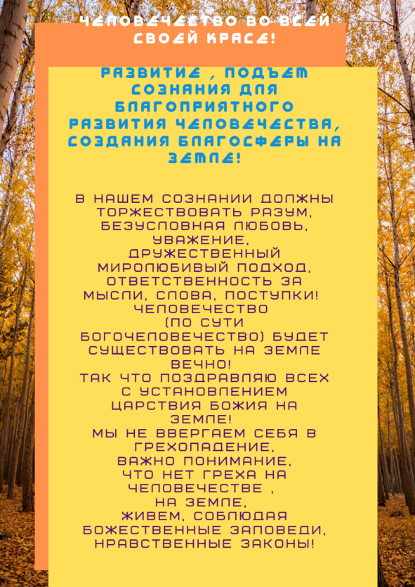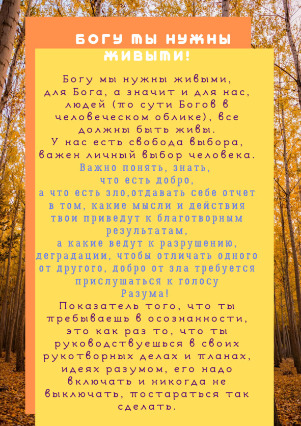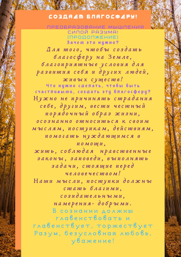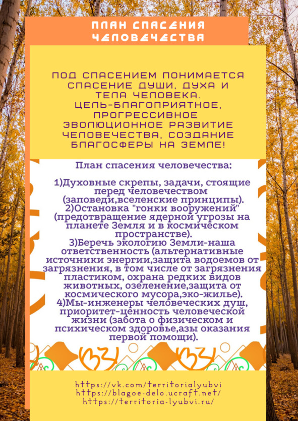 Цель-благоприятное, прогрессивное эволюционное развитие человечества, создание благосферы на Земле! Они предназначены для осознанного выполнения, спасительны для души, духа и тела!