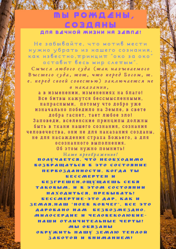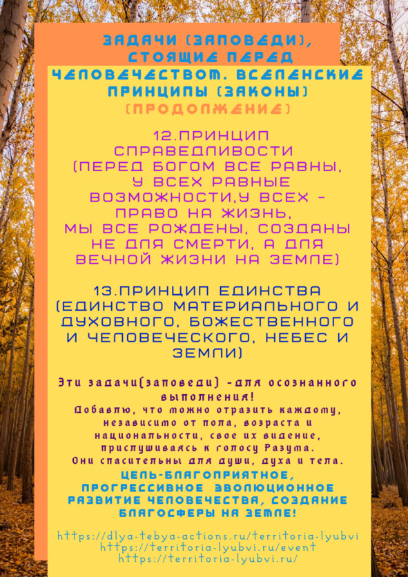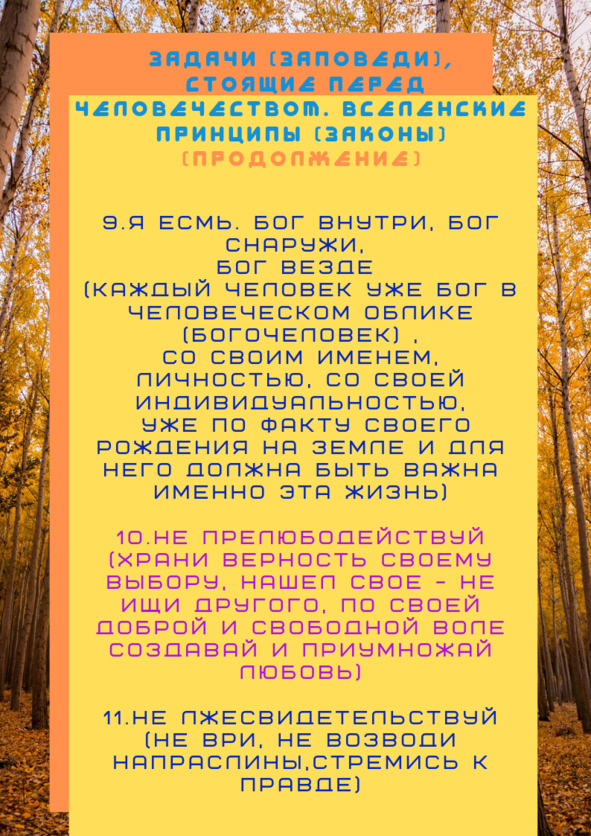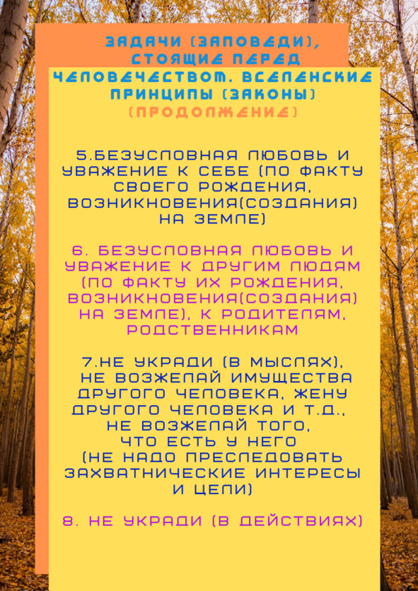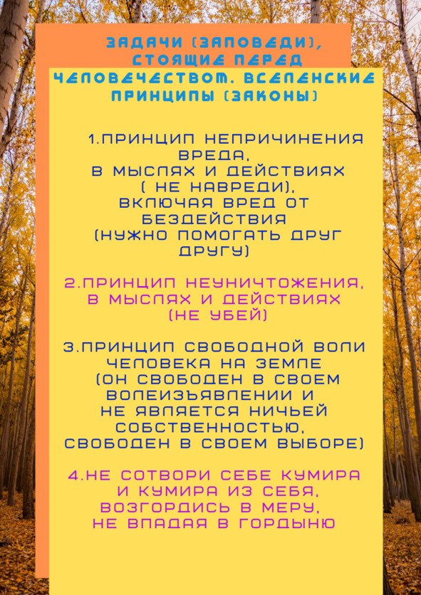 Задачи (заповеди), стоящие перед человечеством. Вселенские принципы, нравственные законы!