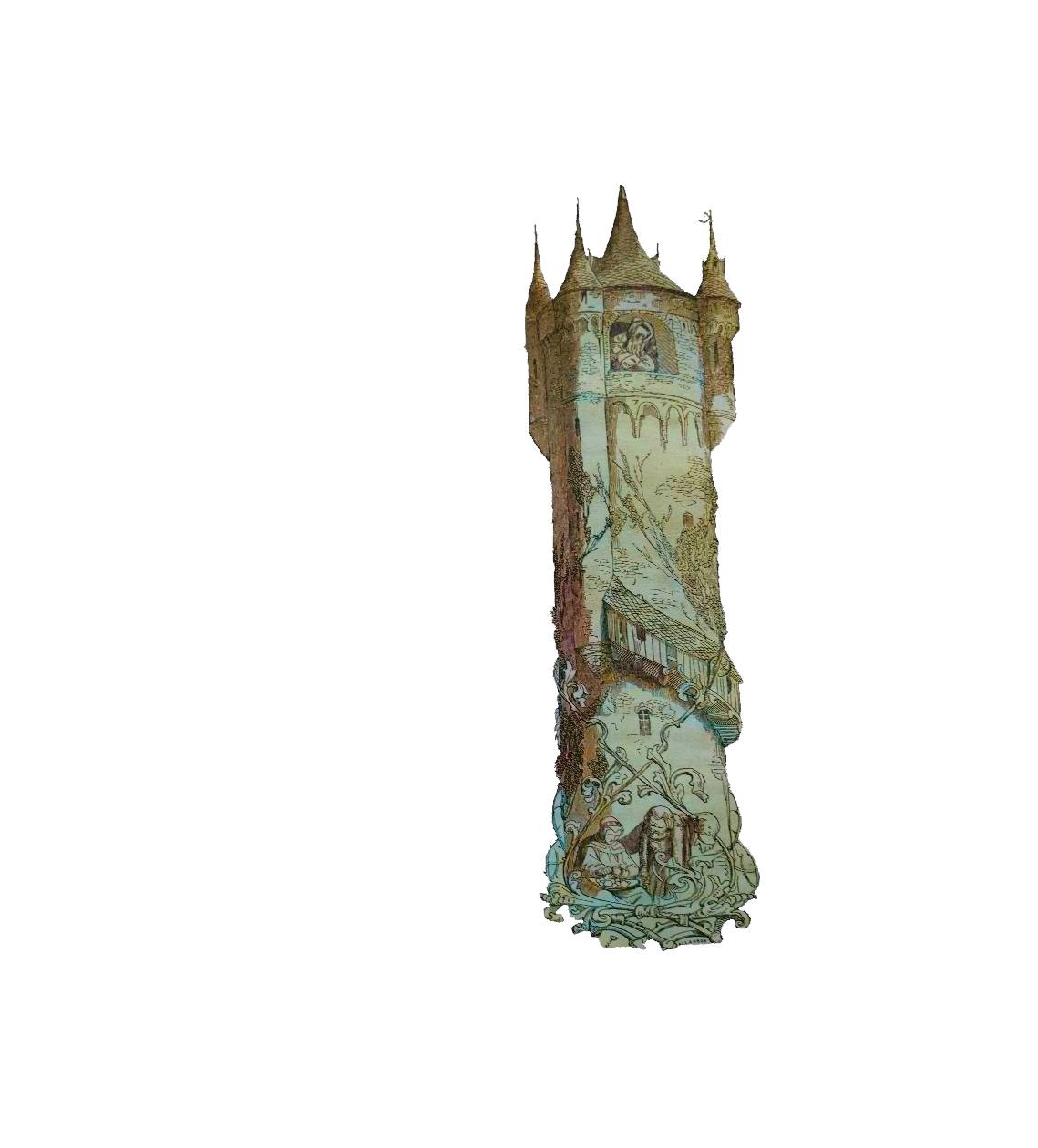 Вульфильда услышала голос своего отца, взмахнула из кареты платочком, подавая тем самым прощальный знак. Родители были потрясены потерей дочери, смотрели друг на друга молча и ошеломленно. Мама однако не поверила своим глазам, приняла похищение за наваждение и происки дьявола. Она схватила связку ключей и побежала в башню, отворила дверь в маленькую комнату, но так и не нашла ни дочь, ни ее вещей. Но на столике лежал серебряный ключ, который она взяла с собой. Когда она невзначай взглянула в окно, то увидела вдалеке облако пыли, поднимающееся на фоне восходящего солнца. И услышала шум и ликование свадебного шествия до самого входа в лес. Разбитая горем, спустилась она с башни, надела траурные одежды, посыпала голову пеплом и плакала три дня. Муж и дочери разделяли ее горе. На четвертый день граф покинул траурную панихиду, чтобы подышать свежим воздухом. Когда он проходил по двору, то там стоял изящный, окованный сундук из черного дерева, хорошо сохранившийся и трудно поднимаемый. Он легко догадался, что внутри, графиня дала ему ключ. Он открыл крышку и нашел там центнер золота.