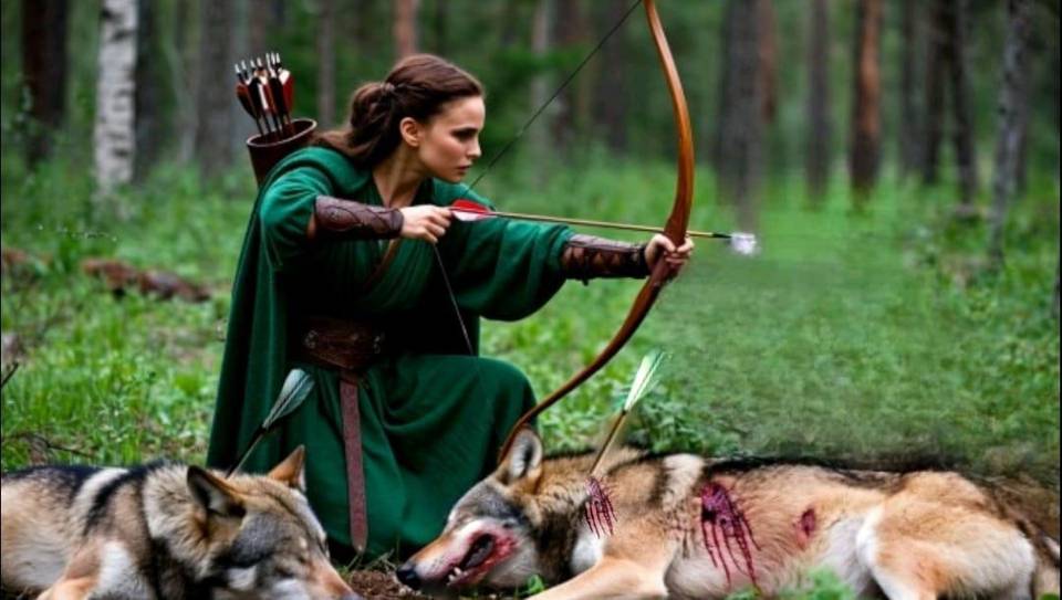 Кстати, с Лилией мы убили одинаковое количество хищников. По всей видимости, она лукавила, когда говорила, что её навыки обращения с луком средние. Она вертелась ужом, чётко контролируя пространство вокруг себя. Через магический щит волки не могли причинить ей вред, в отличие от неё. Из пяти стрел четыре нашли свою цель. Причём у всех волков из шей торчало оперение.