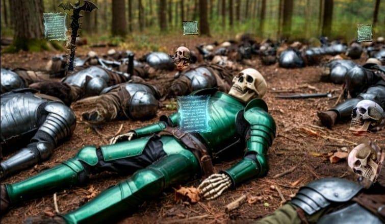 Я знал, что герб рода Стикс это три стрелы, торчащие из круглого щита. И на поле я видел много плащей с такой символикой. Но в лесу были представители трех других родов, но не Стикс. Тела лежали с отрубленными головами, и пока я шёл в глубь леса, ни разу не заметил всплывающей галотаблички, по которой я узнавал о наличии там магического предмета. Кто-то позаботился, чтобы они не восстали, плюс ко всему обобрал их.