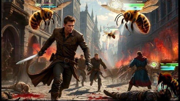 Я выскочил на улицу, усыпанную телами. Не только людей, но и пчёл .