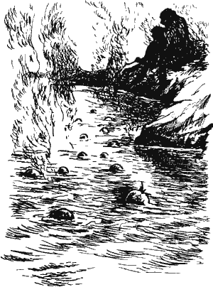 Они окружают охотников, продолжая кричать и прыгать, и все вместе идут к костру посреди селения. Помы сразу принимаются обдирать мо-ка и теп-тепа своими кремневыми ножами, а чунги-охотники идут к реке напиться. Они останавливаются на своем берегу и устремляют взгляд на противоположный. Давно уже привлекает их этот берег, очень давно. Может быть, там охота богаче, плоды вкуснее… Но как перебраться через реку, если она такая широкая и глубокая? Нужно было бы иметь крылья, как у кри-ри…