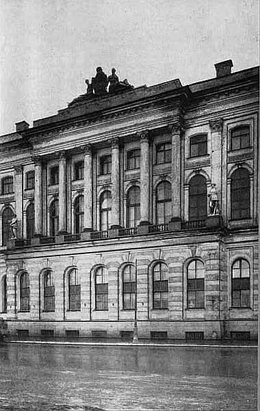 Взгляните на здание со стороны площади. Обилие лепки и скульптуры делает его необычайно нарядным. На зеленом фоне стен красиво выделяются два яруса белых колонн.