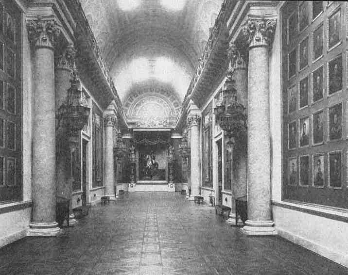 Генералы позировали в мастерской, устроенной в одной из комнат дворца. Тот, кто не мог приехать, присылал свое изображение. С сохранившихся изображений писали и тех полководцев, которых к тому времени уже не было в живых. И все же портретов тринадцати убитых генералов здесь нет, — не с чего было писать. Пустые рамки, затянутые зеленым шелком, хранят имена героев.