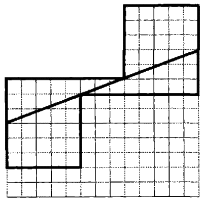 В ходе своего выступления доктор Матрикс продемонстрировал на экране старый парадокс с изменением площади (рис. 1). Перед нами квадрат площадью 64 «квадратные единицы». Если переложить четыре его части так, чтобы те составили прямоугольник, площадь неожиданно вырастет до 65 единиц! А если куски вновь переложить, как показано на рис. 2, общая площадь съежится до 63!
