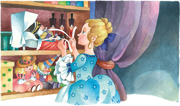 «Да ведь это моя музыкальная шкатулка!» – обрадовалась Мари и, отскочив в сторону, увидела, что весь шкаф как-то странно засветился и всё в нём задвигалось и закопошилось.