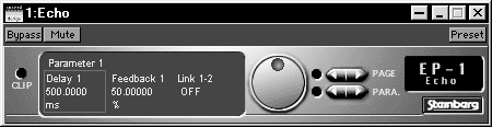 С помощью этого эффекта создаются повторы звуковых сигналов, причем эти повторные сигналы дополнительно обрабатываются. Очень важно, что возникает эффект естественного затухания даже для коротких выборок волны. Используются два блока задержек, которые могут быть настроены независимо.