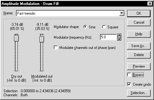 Амплитудная модуляция в Sound ForgeОкно Amplitude Modulation (Амплитудная модуляция), изображенное на рис. 1.62, открывается из меню Effects по команде Amplitude Modulation.