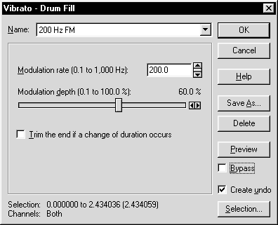 Окно Vibrato, изображенное на рис. 1.63, открывается по одноименной команде из меню Effects.