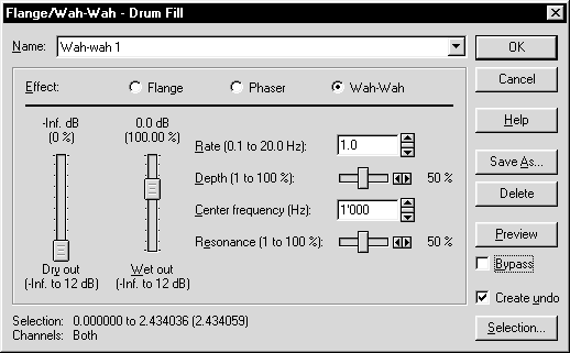 И Flange, и Phaser, и Wah-Wah лучше всего работают с протяжными или медленно затухающими звуками, когда все волновые и частотные сдвиги и перемещения хорошо различаются на слух.