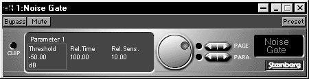 В одной из ячеек, расположенных в левой части окна, из раскрывающегося списка выберите функцию Noise Gate (Шумоподавитель). Откроется соответствующее окно, вид которого показан на рис. 1.94.