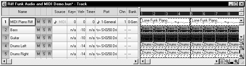 С его помощью легко выполнять аранжировки песен и других музыкальных проектов. Вы можете выделять, копировать, перемещать и реорганизовывать части проекта, используя команды меню или перетаскивая фрагменты с помощью мыши. Различные части проекта можно без затруднений пометить маркерами, то есть контрольными точками и метками, а функция Snap grid (Выравнивание по сетке) облегчает выравнивание по меткам времени.