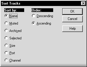 Cakewalk и сам реорганизует и перенумеровывает треки. Вы можете сортировать треки по отдельным параметрам в порядке возрастания или убывания. Для этого выберите команду Sort (Сортировать) из меню Track, и тогда откроется окно Sort Tracks (Сортировка треков), изображенное на рис. 4.2.