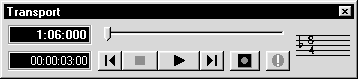 События из выбранных треков перечислены в окне сверху вниз по одному в строке. Когда вы перемещаетесь по списку событий, Cakewalk автоматически модифицирует маркер Now (Настоящее время), который показан в дисплеях инструментальных панелей Transport (Транспортная) и Position (Позиция), изображенных на рис. 4.10 и 4.11 соответственно.