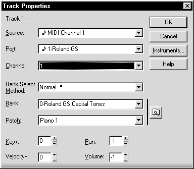 Каждый раз, когда начинается воспроизведение, параметры настройки банка и инструмента устанавливаются для каждого трека в начальные значения. В дальнейшем они могут быть изменены.
