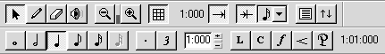 Кнопки управления редактированием всех символов и знаков размещены на инструментальной панели нотатора.