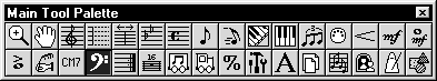 В программе Finale основным средством редактирования нотной записи является инструментальная панель Main Tool Palette (Основная палитра инструментов), которая вызывается из меню Window по команде Main Tool Palette. Вид панели показан на рис. 5.4.