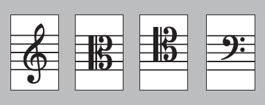 Рис. 5.7. Музыкальные ключи: скрипичный, альтовый, теноровый и басовый