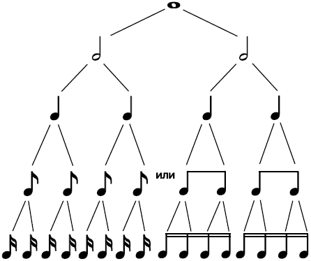 Соизмеримость длительностей – понятие относительное, зависящее от близости или удаленности отдельных звуков. Так, можно говорить о близости или соизмеримости четвертной и восьмой, четвертной и половинной, половинной и восьмой, всех их вместе между собой. Гораздо сложнее говорить о соизмеримости при восприятии на слух шестьдесят четвертой и целой длительностей.
