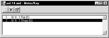 Размер и ключевые знаки альтерации в CakewalkОкно Meter/Key (Размер/Ключевые знаки альтерации) позволяет просматривать, вставлять и редактировать в любом такте размер и ключевые знаки альтерации. Оно открывается командой Meter/Key из меню View. Вид окна показан на рис. 5.26.