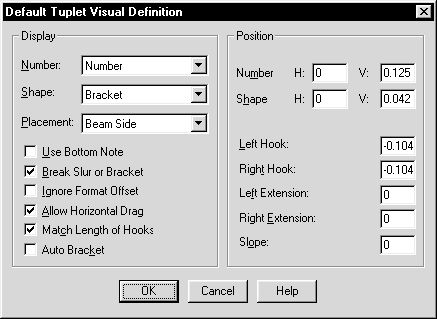 Все опции аналогичны параметрам окна Default Tuplet Visual Definition, за исключением верхнего ряда элементов.