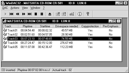 Программа чтения звуковых дорожек с компакт-диска WinDAC32