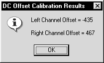 Выделите небольшую область звукового файла и выполните описываемую операцию. SAW Plus 32 вычислит среднее смещение по постоянному току для области, сообщит значения для каждого канала, как показано на рис. 1.32, и сохранит их.