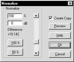 Функция Normalize разработана с таким расчетом, чтобы полностью перемодулировать весь файл. Перед тем как выполнять какие-либо преобразования файла, приводящие к снижению частоты дискретизации, следует произвести его обработку с помощью данной функции. В противном случае применение Normalize может существенно испортить звук.