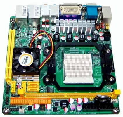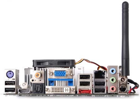 Винчестеры и вентиляторы питаются через molex-разъём, выведенный на плату. Такое решение очень удачно, когда применяется совсем компактный корпус, в котором не предусмотрено размещение ATX БП.