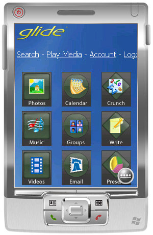 Не забыли специалисты компании TransMedia и про владельцев портативных устройств. Для них создатели онлайновой оси предусмотрели специальный интерфейс системы, адаптированный для мобильных браузеров и размещенный по адресу glidemobile.com. Дополнительно ведутся