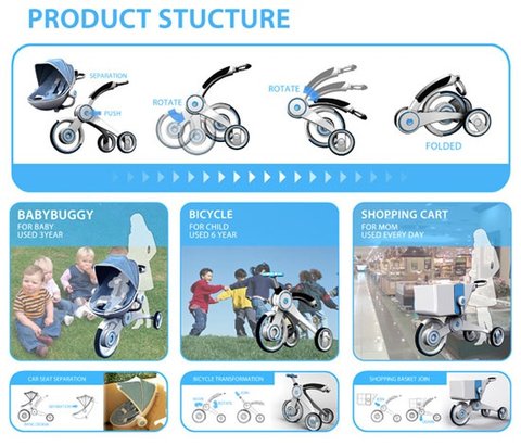 Что делать с коляской, когда ребенок подрастет? Дизайнеры Цзон Хайдон и Баэ Цзюнсюн считают, что современная коляска должна меняться вслед за ребенком и отвечать потребностям нескольких возрастов. В результате на свет появилась коляска-трансформер Babyoom, которая подойдёт как грудничку, так и ребёнку до 6 лет.