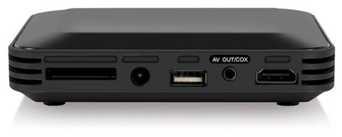 Набор разъёмов на задней панели точно такой же, как и у MP060S, только расположены они в другом порядке. А вот переднюю панель украшает ряд кнопок. С их помощью реализуется базовое управление медиаплеером, хотя с ПДУ работать всё-таки удобнее. Также на переднюю панель выведены два порта USB, разъём mini USB и слот кардридера MC/MMS/SD.