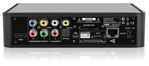 Для подключения внешних жёстких дисков использовано интересное решение. Во-первых, на задней панели есть miniUSB, которым оснащается большинство съёмных накопителей. Во-вторых, там же находится обычный порт SATA и разъём питания. В комплекте с устройством идёт специальный переходник. Таким образом, к медиаплееру можно подключить любой жёсткий диск SATA. Проблема лишь в том, что такая "композиция" вряд ли будет красиво смотреться. Впрочем, если медиаплеер будет стоять под телевизором, то жёсткий диск не будет виден.