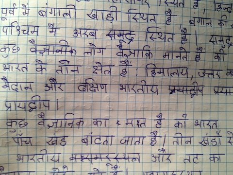 Совсем другое дело - хинди. В первые месяцы меня буквально сотрясал сакральный ужас перед тем, что я вытворяю, прилежно, по старой доброй университетской традиции выписывая в толстой тетрадке такие вот каракули: