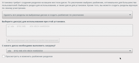 На следующем этапе необходимо выбрать диск для установки и разбить его на разделы.