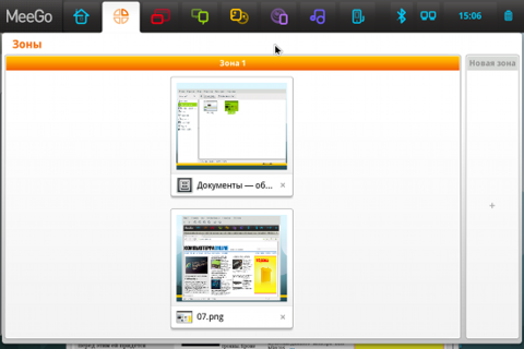 Для переключения между приложениями и рабочими областями используется панель "Зоны" - по умолчанию виртуальный "десктоп" один, но пользователь может создать дополнительный, переместив миниатюру окна в специальную область.
