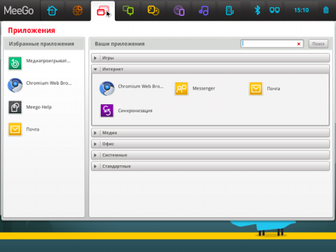 Также пользователю доступен набор консольных утилит для работы с пакетами, характерный для любого основанного на Fedora дистрибутива. Приложений в репозиториях пока немного - привычный многим OpenOffice вы здесь не найдете. Однако минимальный набор рабочих программ для нетбуков в MeeGoo имеется уже сейчас, а кроме того - в комплект поставки входят некоторые несвободные приложения, такие как Adobe Flash Player.